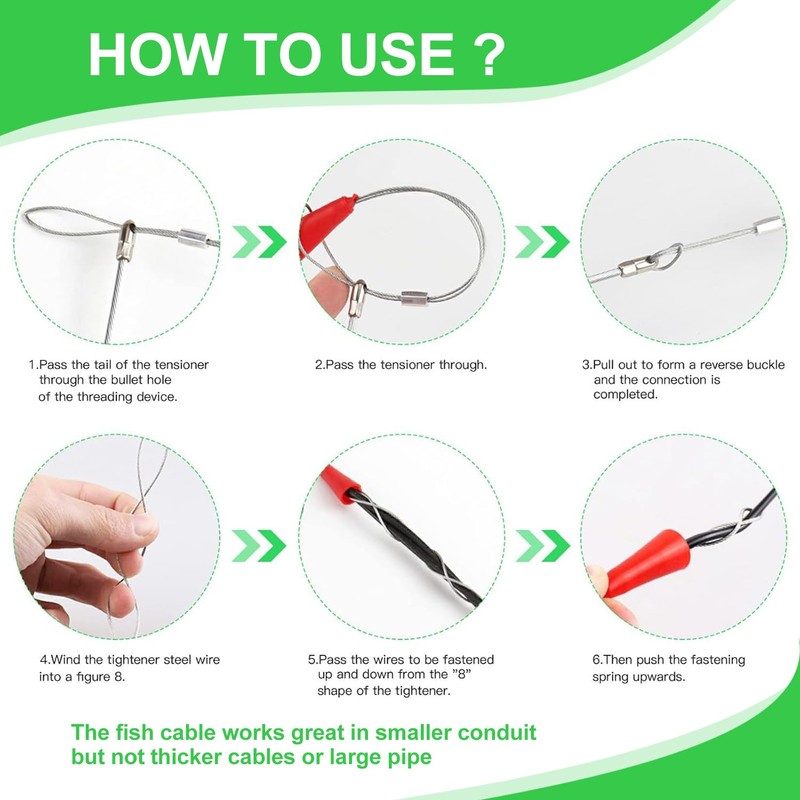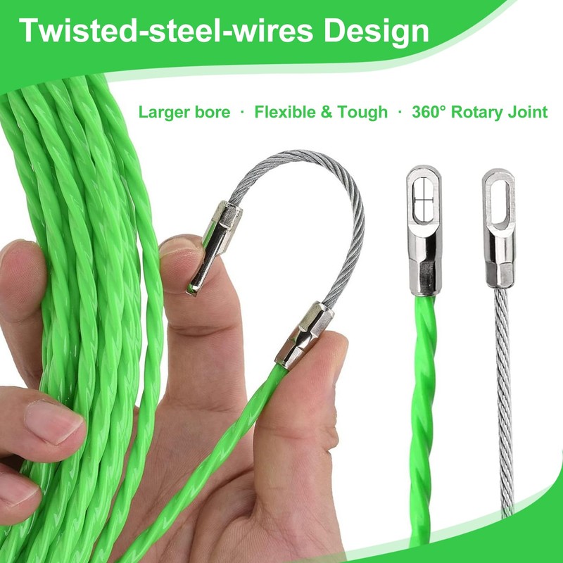 - Easy to use: Lightweight, strong and smooth steel cable head on both heads can easily pass through the crooked pipes. For access to wires and cables under floorboards, above the ceiling, ducts and wall cavities