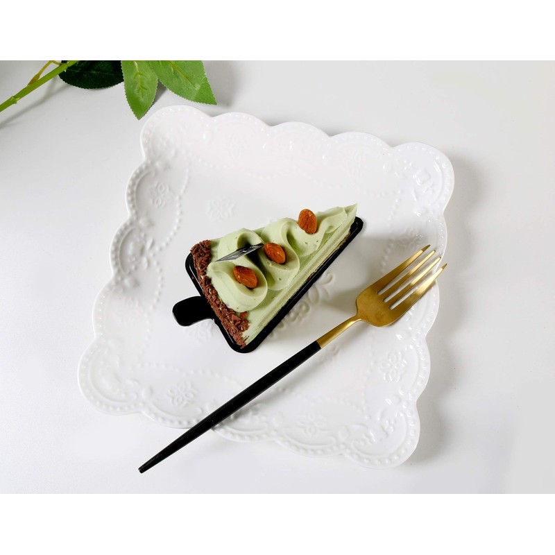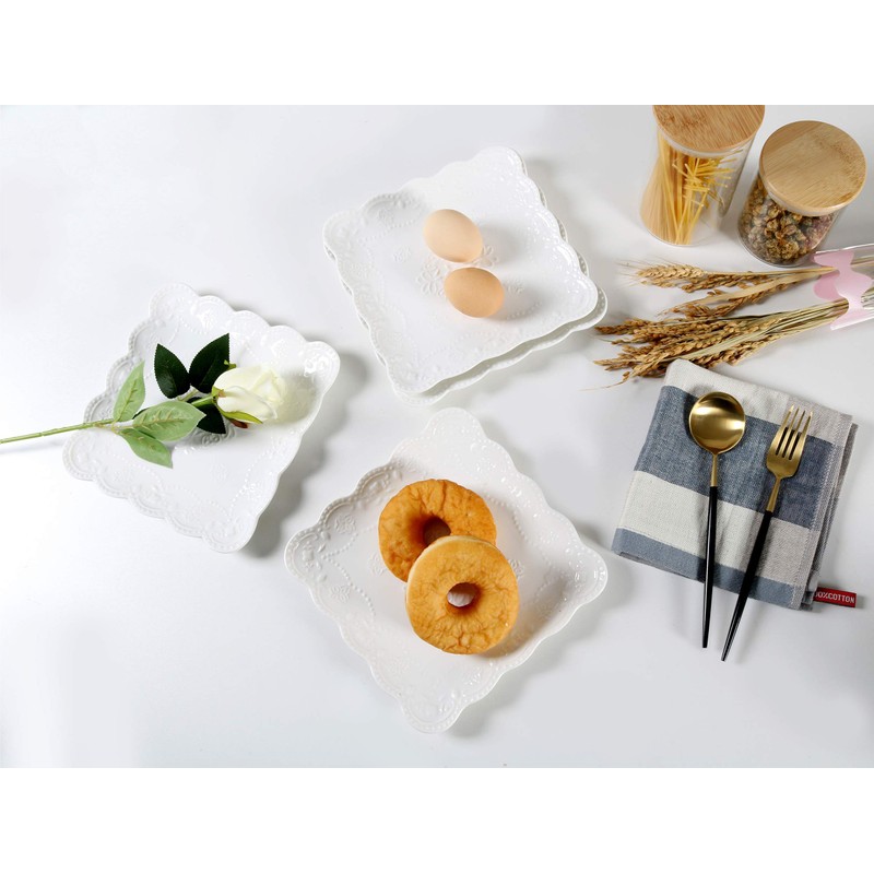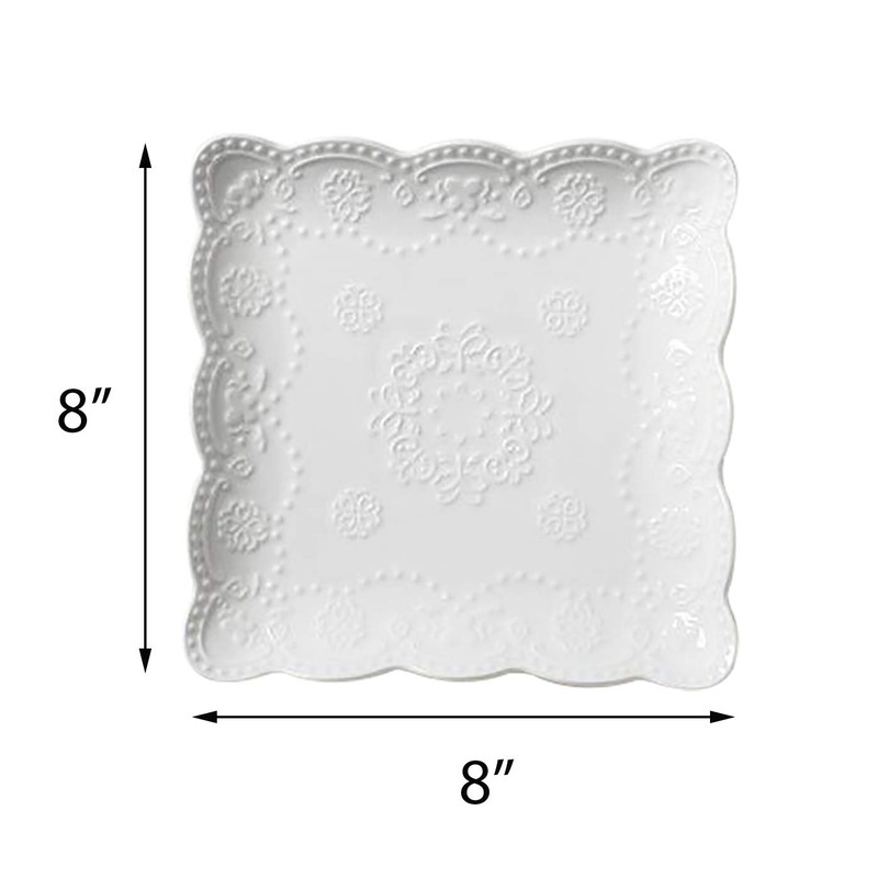 Jusalpha Square Embossed Lace Ceramic Plate-Dinner Plate-Tableware Set- Dish Set-4 Pieces (8 Inches, White) PL15- Square