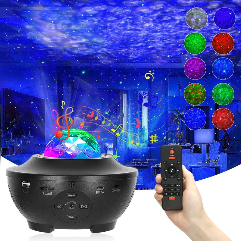 - ★【10 Lighting Modes & Adjustable Brightness】Equipped with 4 color lamps, red, green, blue, and white, you can choose between solid and mixed colors and 10 lighting modes. Create a variety of atmospheres, whether you adjust the speed of the ripple to suit your needs, or choose the colorful ripple automatic circulation. You can also light up your favorite color to create a wonderful night! In addition, you can control the brightness of the LED projection light at low brightness - medium - high brightness - high brightness depending on your needs. It will completely change the look of a room