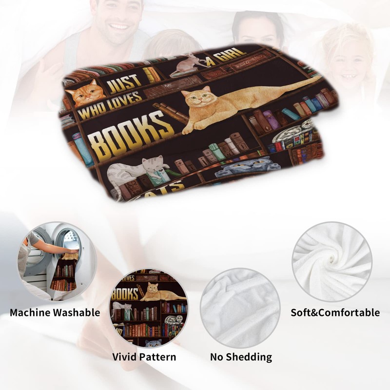 - 📚Easy Care: The Just A Girl Who Loves Books and Cats Blanket is made of high-quality material and exquisite sewing technique. Machine wash on gentle cycle with cold water, and our blanket will come out without any shrinking, color loss, or shedding. It's made to last and doesn't lose its luxurious softness even after months of use.