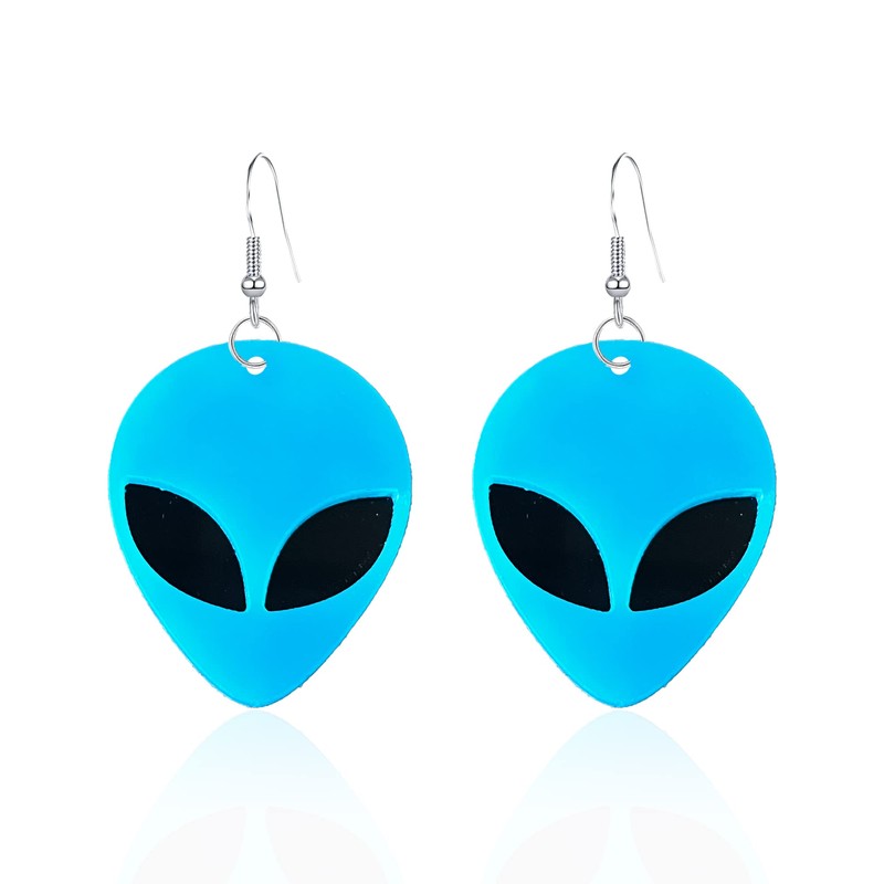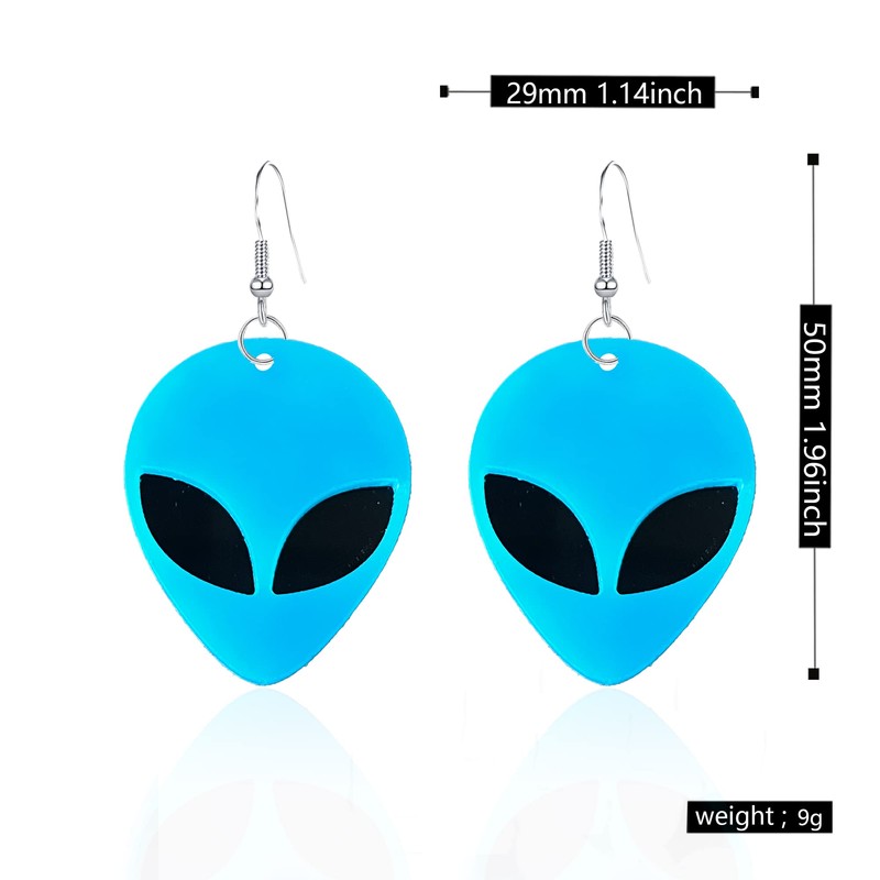 Just Follow arete colgantes de acrílico con cara de extraterrestre verde punk con ojo grande, diseño de extraterrestres espaciales, aretes de gota de acero inoxidable, Acrílico, N/C