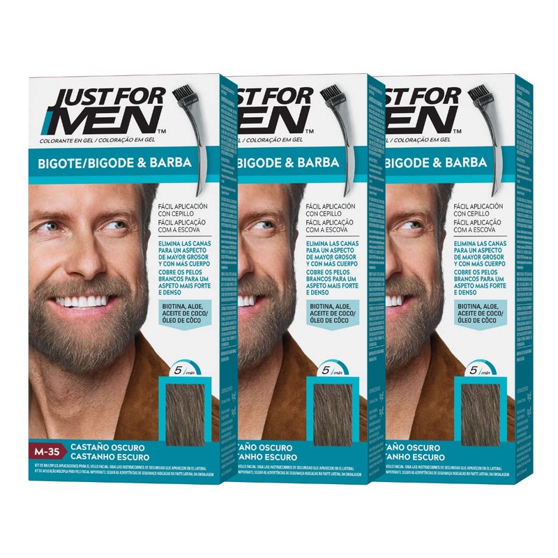 Just For Men 3 x Beard & Moustache Colour Gel Natural Look Long Lasting Dark Brown M-35