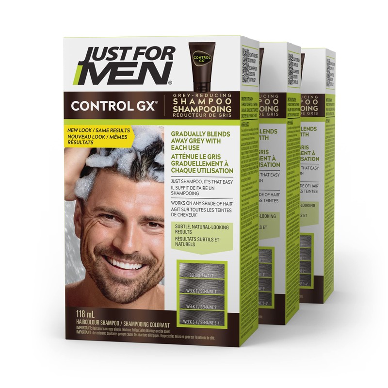 Just For Men Control GX Grey Reducing Shampoo, Gradually Colors Hair, 118ml (3 Count)