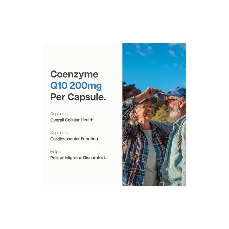 • Safe and Pur:  Obtained from pure sources, our health supplement is potent and of the highest quality, making it a safe choice for everyone. With Coenzyme Q10, our supplement contains 200 mg of CoQ10 (Ubiquinone) in each capsule.