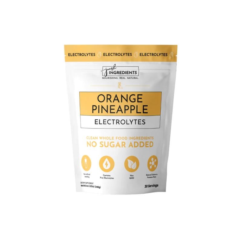 Enjoy bright, tropical hydration with Just Ingredients Orange Pineapple Electrolytes, crafted from real fruit and free from artificial sweeteners or sugar alcohols. Featuring a clean 3:1 potassium-to-sodium ratio, this blend supports optimal hydration without excessive sodium. Each serving delivers all five essential electrolytes—potassium, magnesium, sodium, chloride, and calcium—plus organic coconut water for added minerals. Naturally flavored with organic pineapple and orange for a refreshing, citrus-sweet taste, this electrolyte powder is perfect for athletes, active lifestyles, or daily hydration needs. Designed for the whole family, it’s a clean, natural way to fuel your body and feel your best every day.