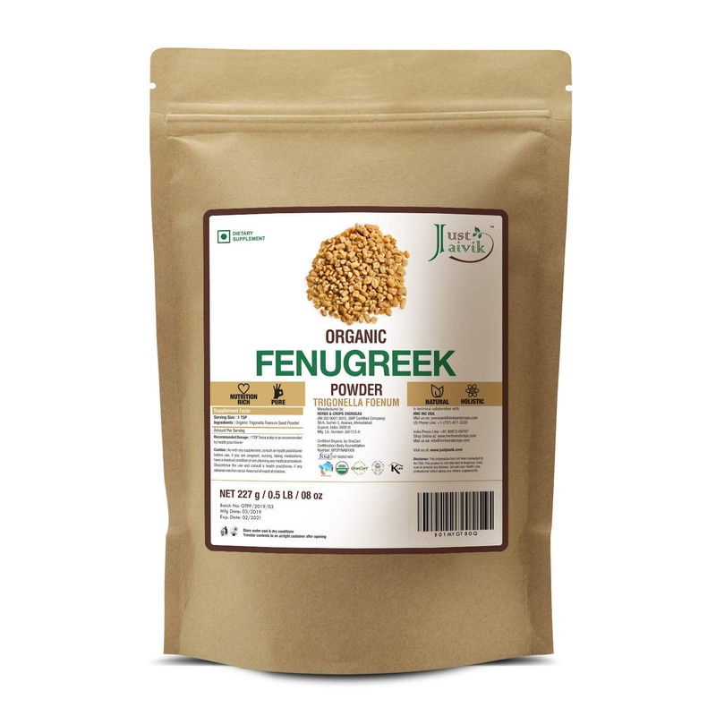 Just Jaivik 100% Organic Fenugreek Powder- 0.5 LB / 227g / 08 oz- USDA Certified Organic - Trigonella Foenum Powder- Methi Powder