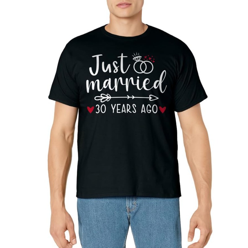 - Just married 30 years ago is a cool wedding anniversary graphic clothing gift idea for 30 years married couple to celebrate 30th wedding anniversary party. This is a funny couple matching 30th anniversary party gift idea for husband and wife.