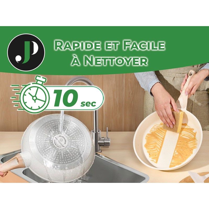 - High-quality non stick cookware:granite features non stick pan, ceramic nonstick frying pan and non toxic cookware safe for daily use. It is recommended to wash the cookware by hand, as cleaning it is quick and easy — simply wipe with a paper towel or rinse with water. Safe and non toxic, free of PFOA, PFOS, APEO lead, cadmium and other toxic substances