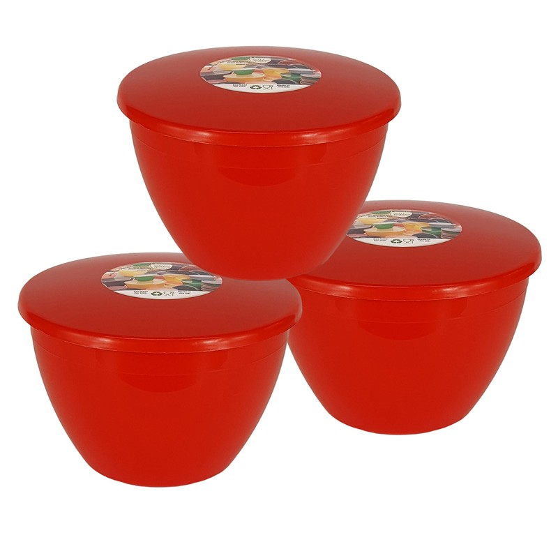 This pack contains 3x 1.5pt RED Pudding Basins with matching Lids