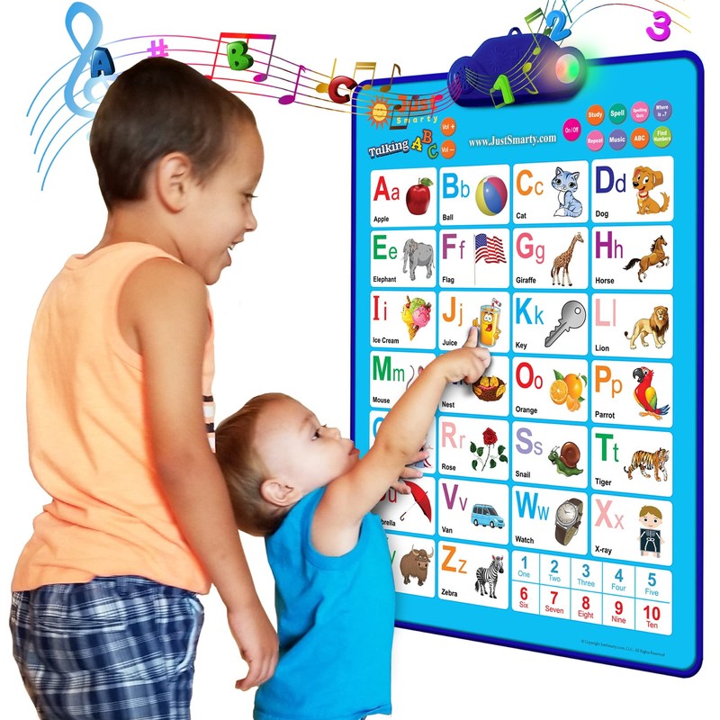 Just Smarty Interactive Alphabet Wall Chart | Talking ABCs & 123s Music Poster with Interactive Light | Toddler Alphabet Learning | Best Educational Gift for Boys & Girls Ages 2 3 4 5 | Letter Sounds