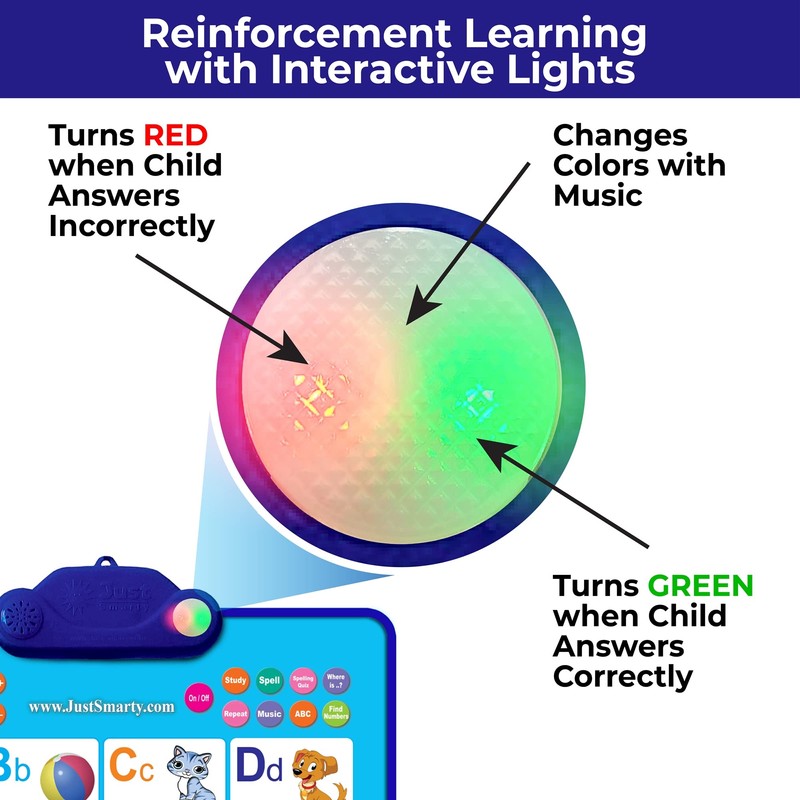 - ✅ INTERACTIVE LIGHT – Changes Colors with Music / Turns GREEN when Child Answers Correctly / Turns RED when Child Answers Incorrectly.