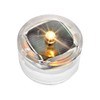 - Solar rechargeable LED light automatically turns on at night. No batteries required, compact and lightweight
