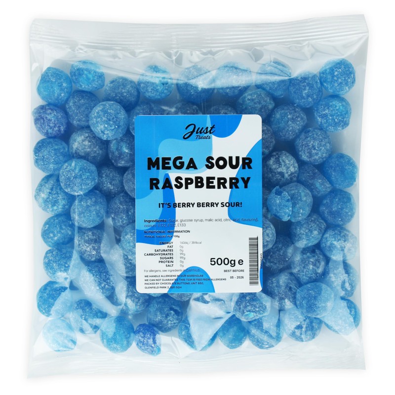 - Mega Sour Raspberry - Sour boiled sweets with a hidden layer of raspberry flavour that turns tongues blue