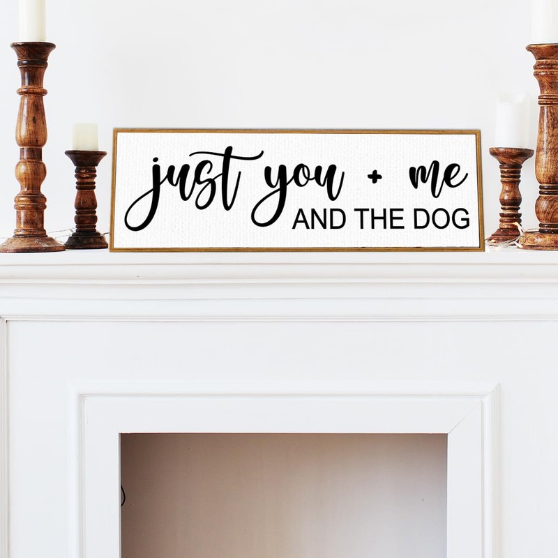 Just You Me And The Dogs Sign Wall Art Canvas Framed,Funny Dog Quotes Sign Wall Decor