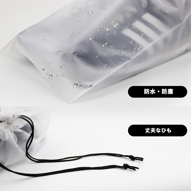 JUSTBOKU Drawstring Cloths, Waterproof, Transparent, Set of 12, Shoe Bag, Shoe Case, Thin, Shoe Bag, Drawstring Bag, Mail Order, Storage, Travel, Hot Springs, Translucent Large 10 Sheets