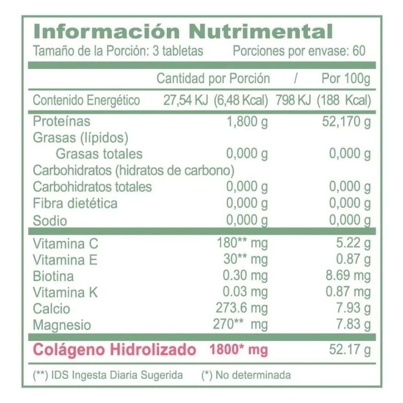 Justcollagen Colageno Hidrolizado 1800 180 Tabletas C E K Sabor Justcollagen