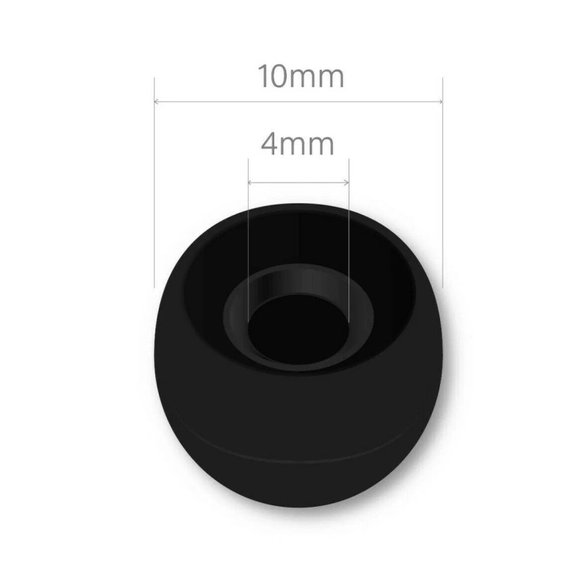- 10 Pairs of Medium Black Silicone Replacement Earbud Tips (20 pieces) with a 4mm post Connection. Fits 3.8 - 4.2mm posts.