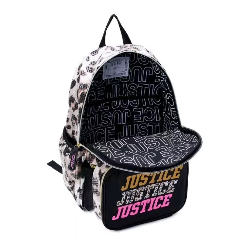 This JUSTICE Girls Backpack Set comes with a convenient lunch bag, PomPom and pouch, all in a stylish leopard print. The backpack measures 17 inches in width and is made of 100% polyester material. It features a laptop sleeve and bottle holder, making it perfect for school or everyday use. The set is designed for female guests and is suitable for unisex adults. The manufacturer part number is H2JU54758 and the brand is Justice. The backpack set is a great addition to any collection and is perfect for those who love the leopard theme.