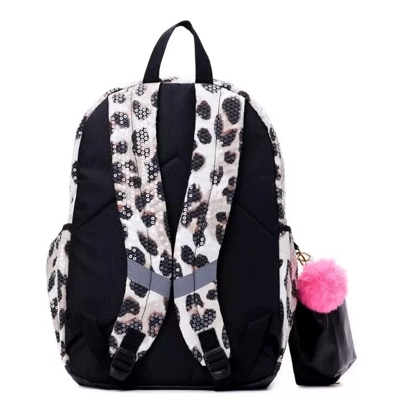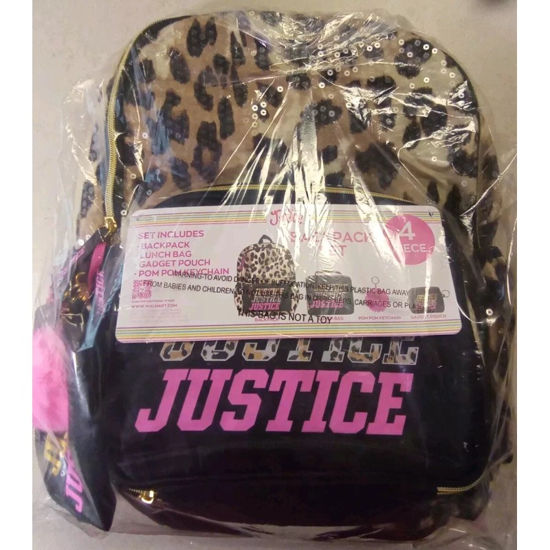 JUSTICE Girls 17" Backpack Set with Lunch Bag, PomPom & Pouch Leopard 4-Pcs