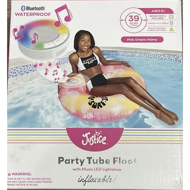 Enjoy hours of fun in the sun with the Justice Inflatable Pool Float. This colorful and durable pool float is perfect for children aged 6 and above who love to play in the water. It comes equipped with a waterproof speaker and lights to add to the fun.
