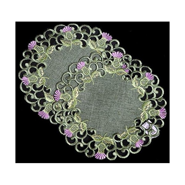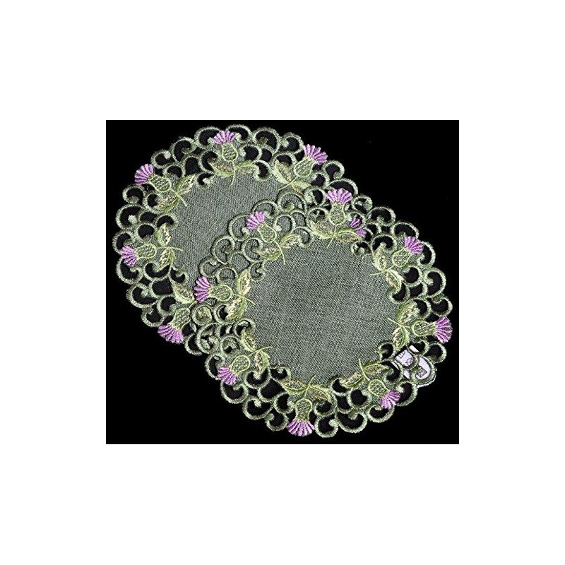 Justina Claire Pair of Doilies (small) in a Balmoral Thistle Design (Green)