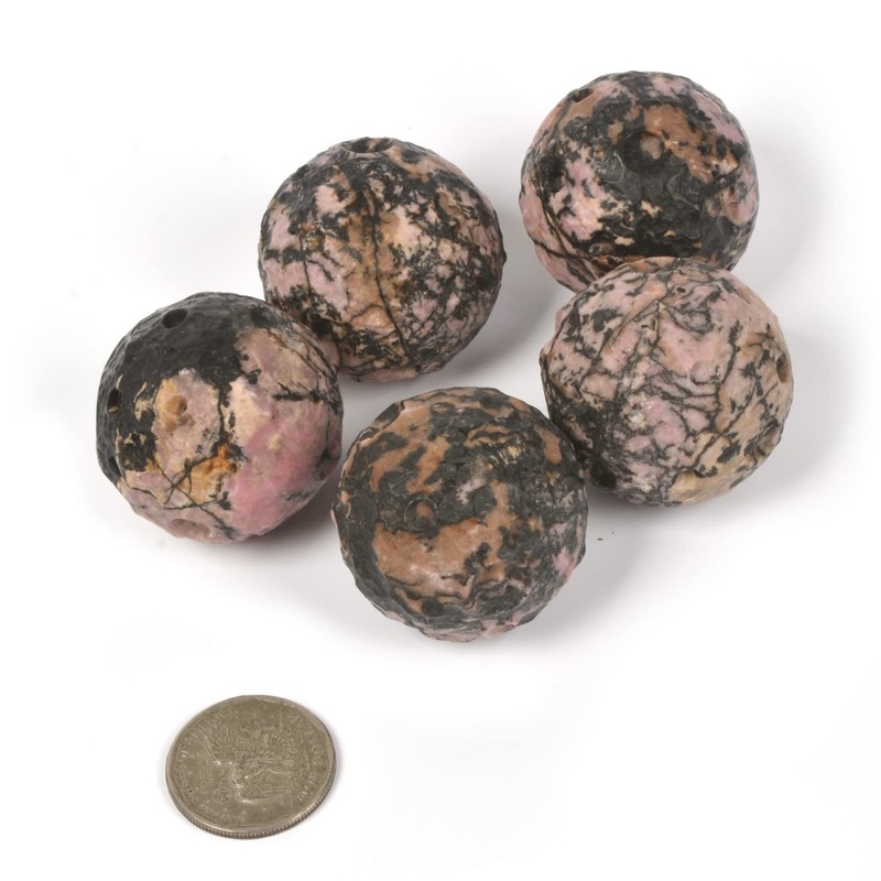 Justinstones Matrix Rhodonite Rough Moon Sphere Luna Surface Texture 40mm Ball Gemstone Crystal Healing Care Office Decor Stone Crafts with 7 Chakra Crown Holder