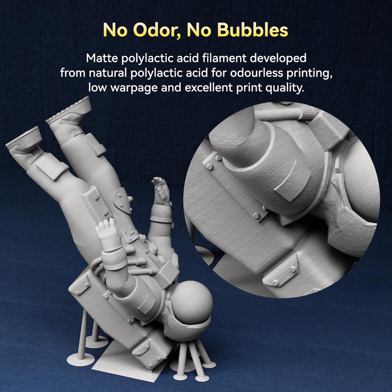 - MATTE SURFACE - Using a special process to make the filament present a matte texture, the printed surface of the print is both matte and flat, and will not produce obvious layer lines