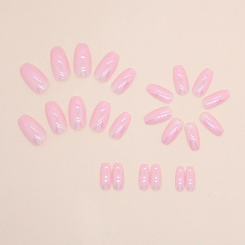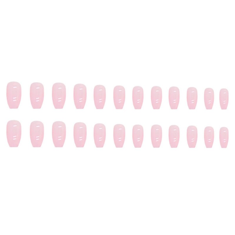 JUSTOTRY Pack of 24 Nude Coffin Nails for Sticking, Medium, Pink Plain French Press On Nails with Glue, Ballerina Artificial Nails, Fake Nails for Nail Art, Glossy Fingernails for Sticking on for