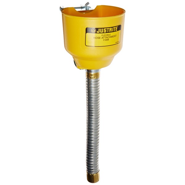 Justrite 11089 Bolt-On Funnel with Galvanized Hose, 1" OD x 14" Length, For Steel Can
