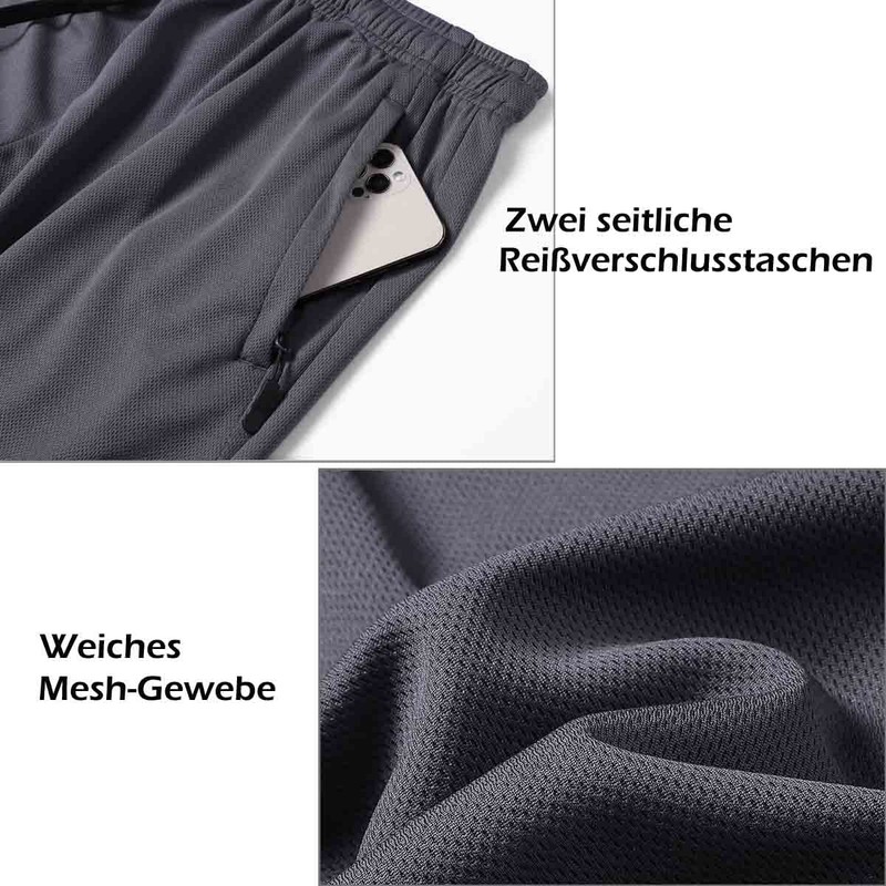 • 2 zipped pockets: The men's sports shorts have 2 deep side pockets with zip to keep your belongings safe during training.