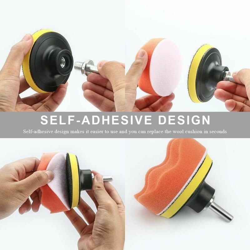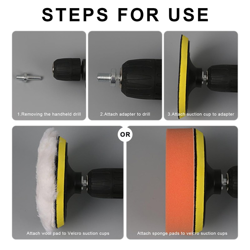 Package Includes: 8 Sponge Pads, 1 Wool Pad, 1 Backing Pad, 1 Drill Adapter