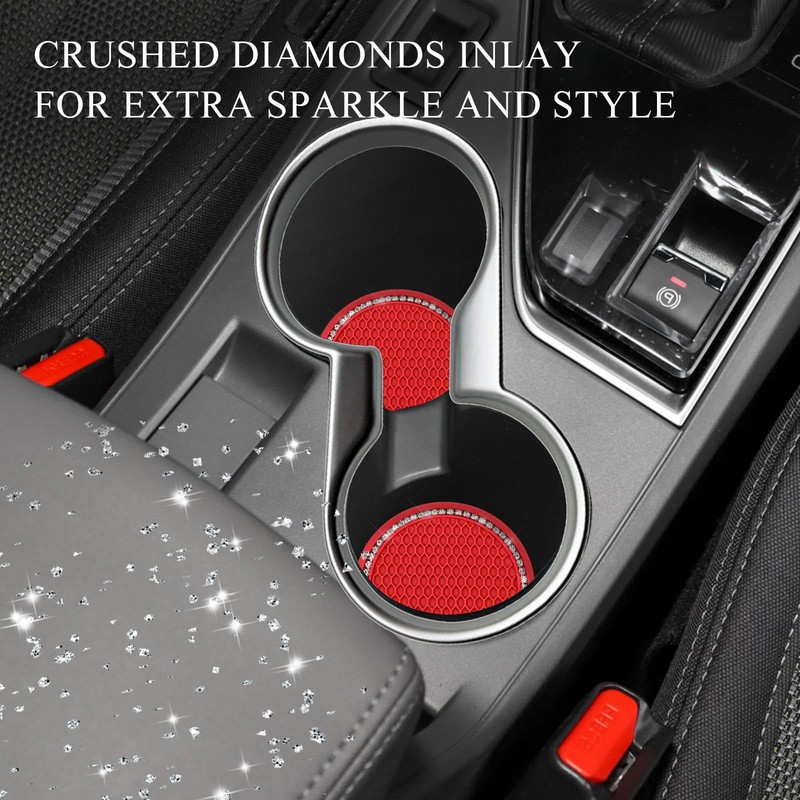 - 【Fashion Look】: Bling rhinestones and diamond-checkered texture create the sleek and delicate look of this car coaster. Its standout styling makes it the great accent for your vehicle. They are available in various of colors to add a personalized touch to your car's interior.
