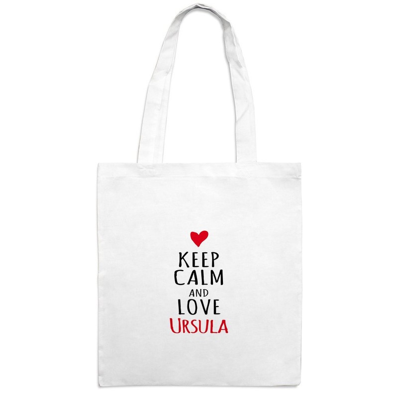 Jute Bag with Name Ursula - Keep Calm Motif - Colour White - Fabric Bag, Jute Bag, Hipster Bag, White