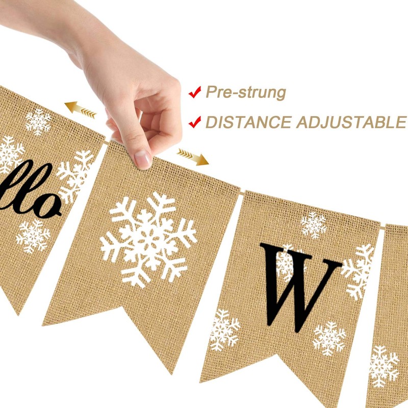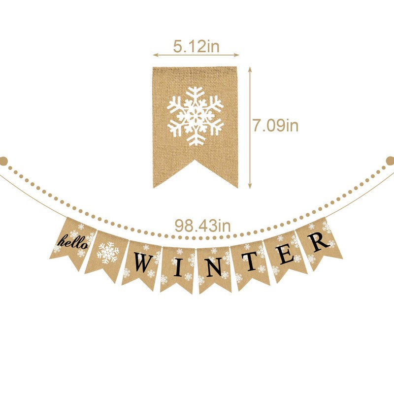 Jute Burlap Hello Winter Banner Snowflake Christmas Holiday Mantel Fireplace Bunting Garland Decoration