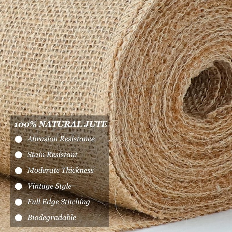 - ECO-FRIENDLY & DURABLE: made of environmentally friendly materials, our jute table runner roll is both durable and reusable, making it the perfect choice for any event. It has a high density of 50 x 50 and is free from impurities, which increases durability. If you are looking for an eco-friendly and durable burlap table runner for your wedding or event, our product is the ideal choice.