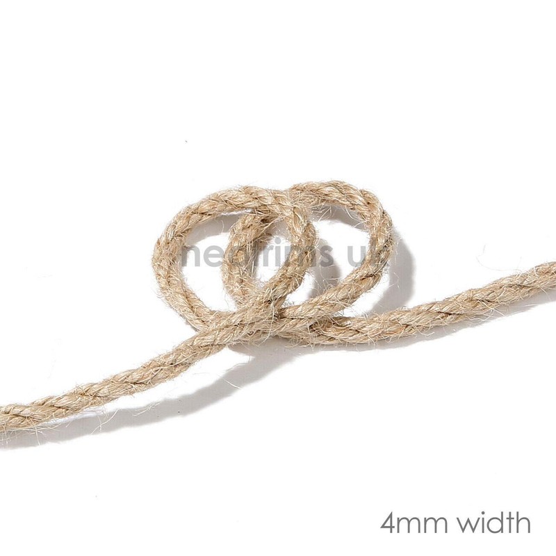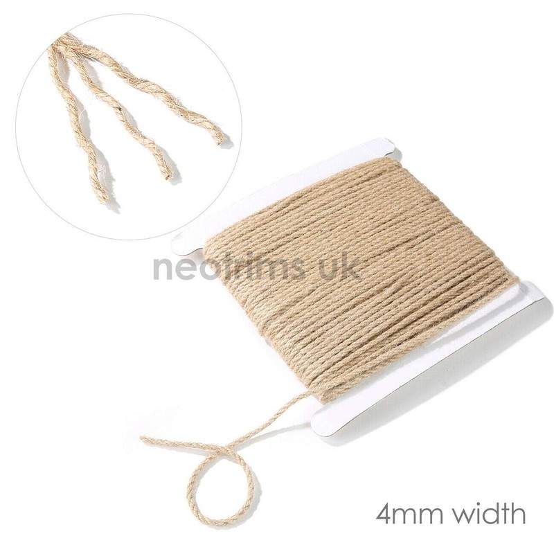 Jute Twine String Rope,3 Ply. 2mm,4mm, 6mm and 10mm Thick. Natural Biodegradable Garden Cord,Hanging Decoration,Wrapping Bundling,Neotrims. 4mm, 40m 130 Feet