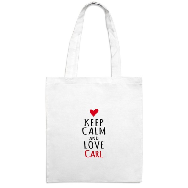 Jutebeutel mit Namen Carl - Motiv Keep Calm - Farbe weiß – Stoffbeutel, Jutes...