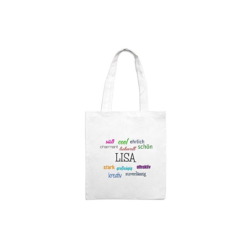 Jutebeutel mit Namen Lisa - Motiv Positive Eigenschaften - Farbe weiß – Stoffbeutel, Jutesack, Hipster, Beutel