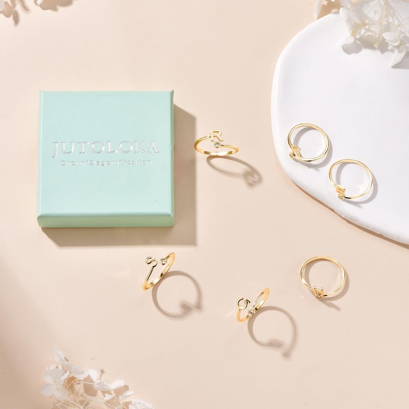 JUTOLOKA 2 PCS 14K Gold Plated Initial Rings for Women | Adjustable Open Ring | Cubic Zirconia Letter Initial Ring | Stackable Rings for Women (J/S)