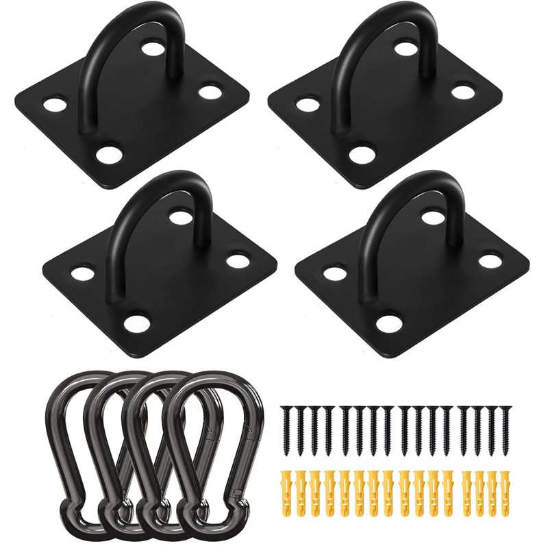 - Package Includes: 4 x Square pad eyes, 4 x Carabiners, 16 x Screws, 16 x Expansion Pins. Type: A must-have mounting accessory for any shade saille