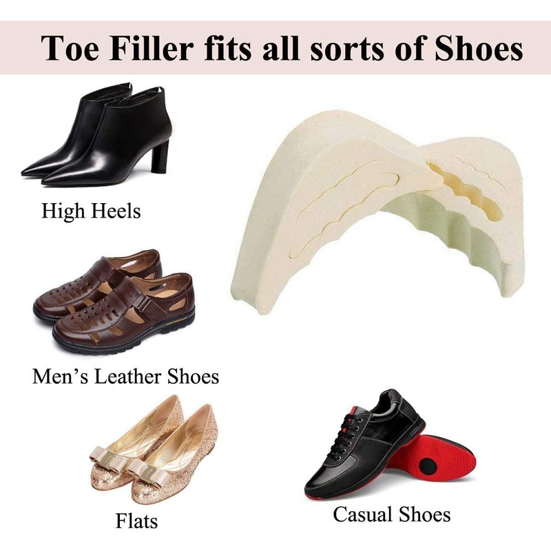 - Multi-functional: This shoe care cushion can be easily adjusted by placing it in your toes. The memory foam cushion fits the toes of the foot, preventing the front of the shoe from slipping and slipping off. The sponge material helps to eliminate the pain caused by friction between your shoes and toes
