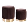 JUUON Round Velvet Storage Ottoman Set of 2, Nesting Pouf Footrest with Gold Metal Base and Pleated Design, Multifunctional Side Table & Vanity Stool for Living Room, Bedroom, Dorm (Pleated-Brown)