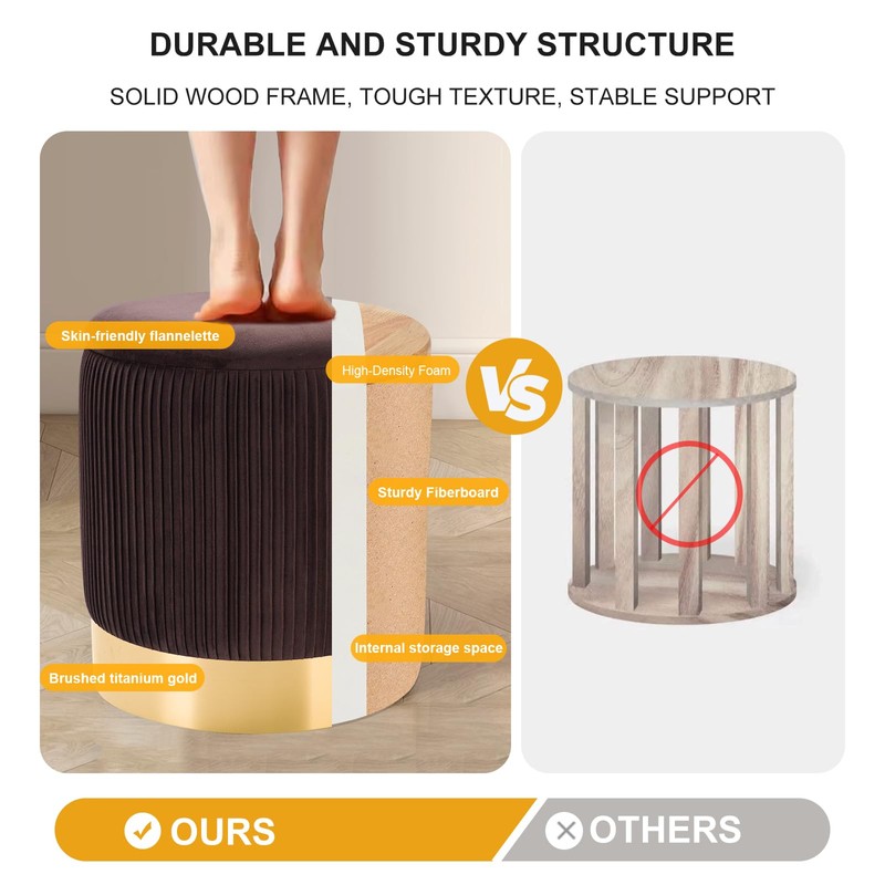 - Sturdy & Durable Build: Crafted with a solid wood frame and reinforced structure, this ottoman supports up to 300 lbs. Wrapped in high-quality velvet with tight stitching, it offers long-lasting durability and elegant style.