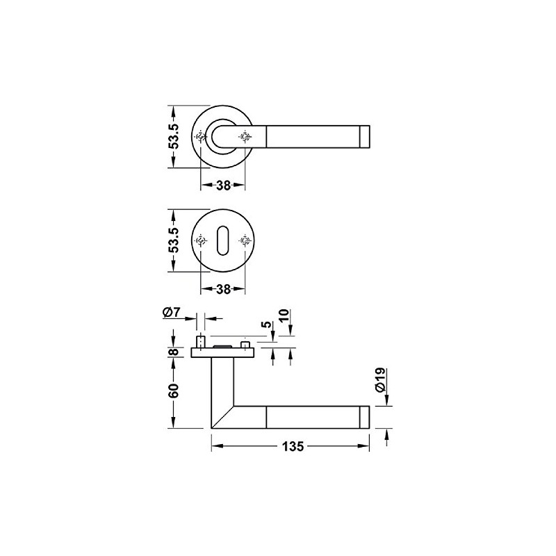 - Installation: in pairs thanks to plastic support cams and M4 threaded screws - high-quality, high-quality and elegant room door handle