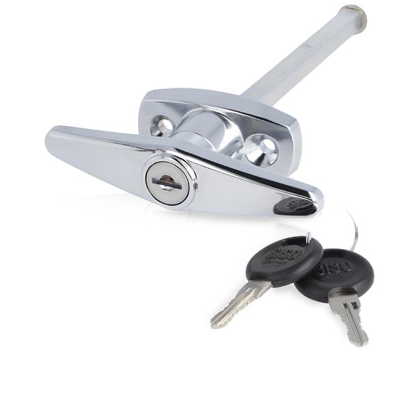 JUVA Garage Door Lock Gate Handle | Cross Handle for Garage Doors | T-Handle, Twist Handle with Lock Lockable 8 mm Square Pin | Polished Metal | Polished Chrome Plated | Gate Lock Garage Door Handle