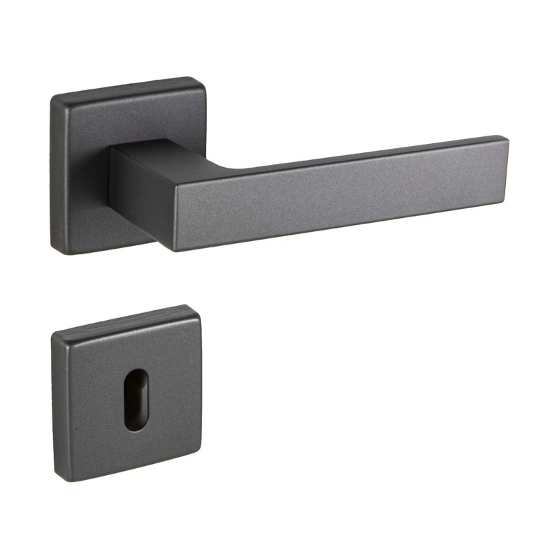 JUVA Handle Set Aluminium Door Fitting Anthracite Door Handle Room Door BB Deadlock Handle Pair with Door Rosettes Push 1317 1 Set – Design Door Set Square with Mounting Material