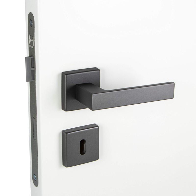 JUVA Handle Set Aluminium Door Fitting Anthracite Door Handle Room Door BB Deadlock Handle Pair with Door Rosettes Push 1317 1 Set – Design Door Set Square with Mounting Material