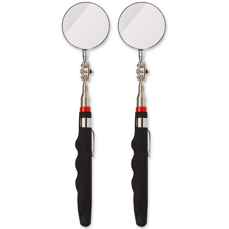 Juvale Inspection Mirror Tools - 2-Pack, 2 in Round Heads & 24.5 in Telescoping Handles - Machinist Tools & Mechanics Mirror for HVAC, Auto & Weld Inspection