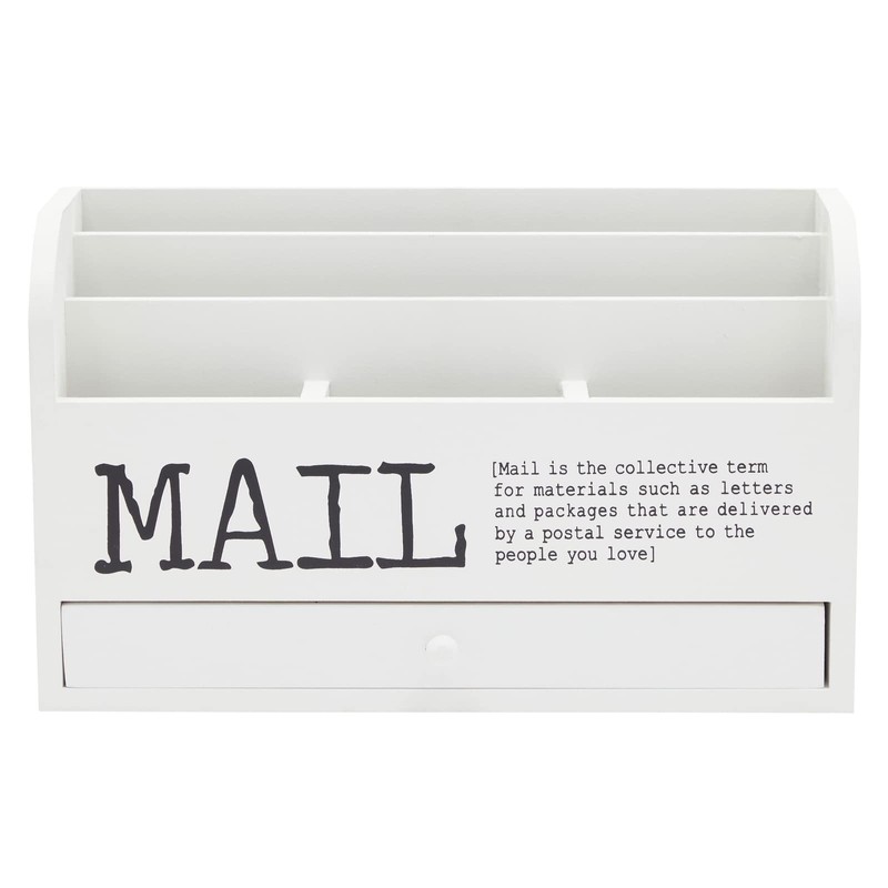 - Mail Organizer Countertop Storage: This white mail storage organizer features a 3 tiered design with multiple compartments to store and file your incoming and outgoing mail easily
