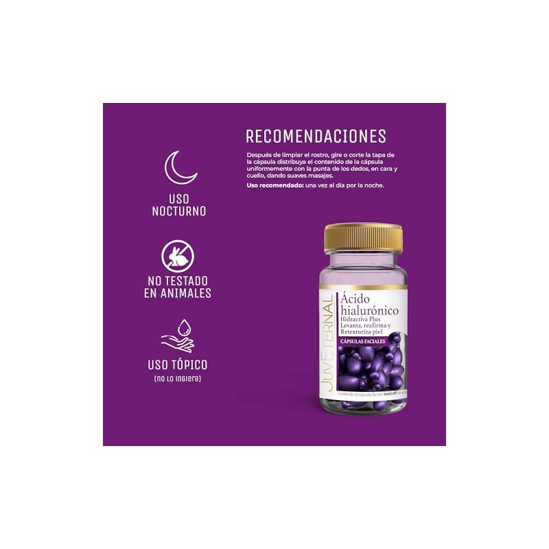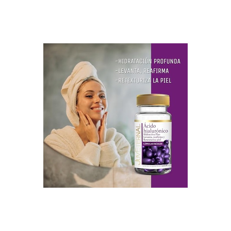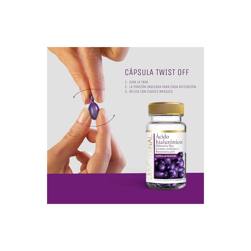JUVETERNAL Cpsulas Faciales de cido Hialurnico 90 cpsulas Twist-Off Hidrata, Rellena y Suaviza tu Piel